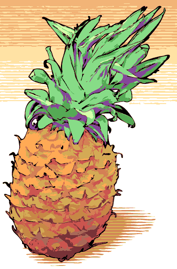 Public domain photos of apple and leaf, and D.H. photo of pineapple, evolved in Photoshop